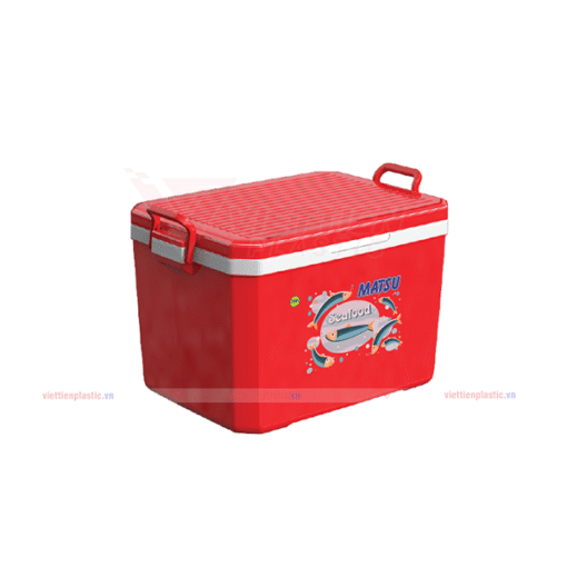 - Thường được làm từ nhựa PP (Polypropylene) cao cấp, kết hợp với lớp xốp cách nhiệt hoặc PU Foam, giúp giữ lạnh trong thời gian dài.