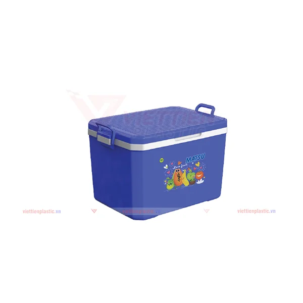 - Thường được làm từ nhựa PP (Polypropylene) cao cấp, kết hợp với lớp xốp cách nhiệt hoặc PU Foam, giúp giữ lạnh trong thời gian dài.