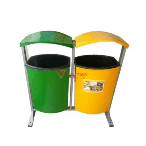 Thùng rác treo đôi được cải tiến với thiết kế 2 thùng cạnh nhau, được bắt vít cố định vào khung treo. Sản phẩm được làm từ chất liệu nhựa composite có khả năng chống cháy, chịu được điều kiện thời tiết khắc nghiệt và một số tác động hóa học thông thường. Thùng rác treo đôi có bề mặt sáng mịn, màu sắc tươi sáng cho thời gian sử dụng lâu dài, không ảnh hưởng đến sức khỏe người sử dụng.