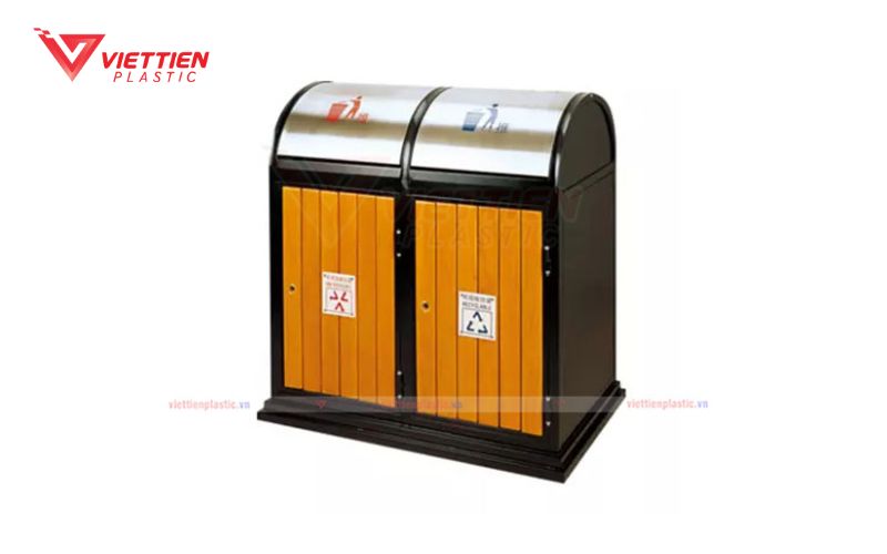 Tại các khu vực dạo bộ ngoài trời, Nhựa Việt Tiến cung cấp các cụm thùng rác phân loại 2 hoặc 3 ngăn chuyên dụng. Sản phẩm sử dụng vật liệu thép sơn tĩnh điện ngoài trời hoặc nhựa Composite chống tia UV, giúp duy trì độ bền cơ học và không bị phai màu dưới tác động của thời tiết, khuyến khích cư dân phân loại rác tái chế ngay tại nguồn.
